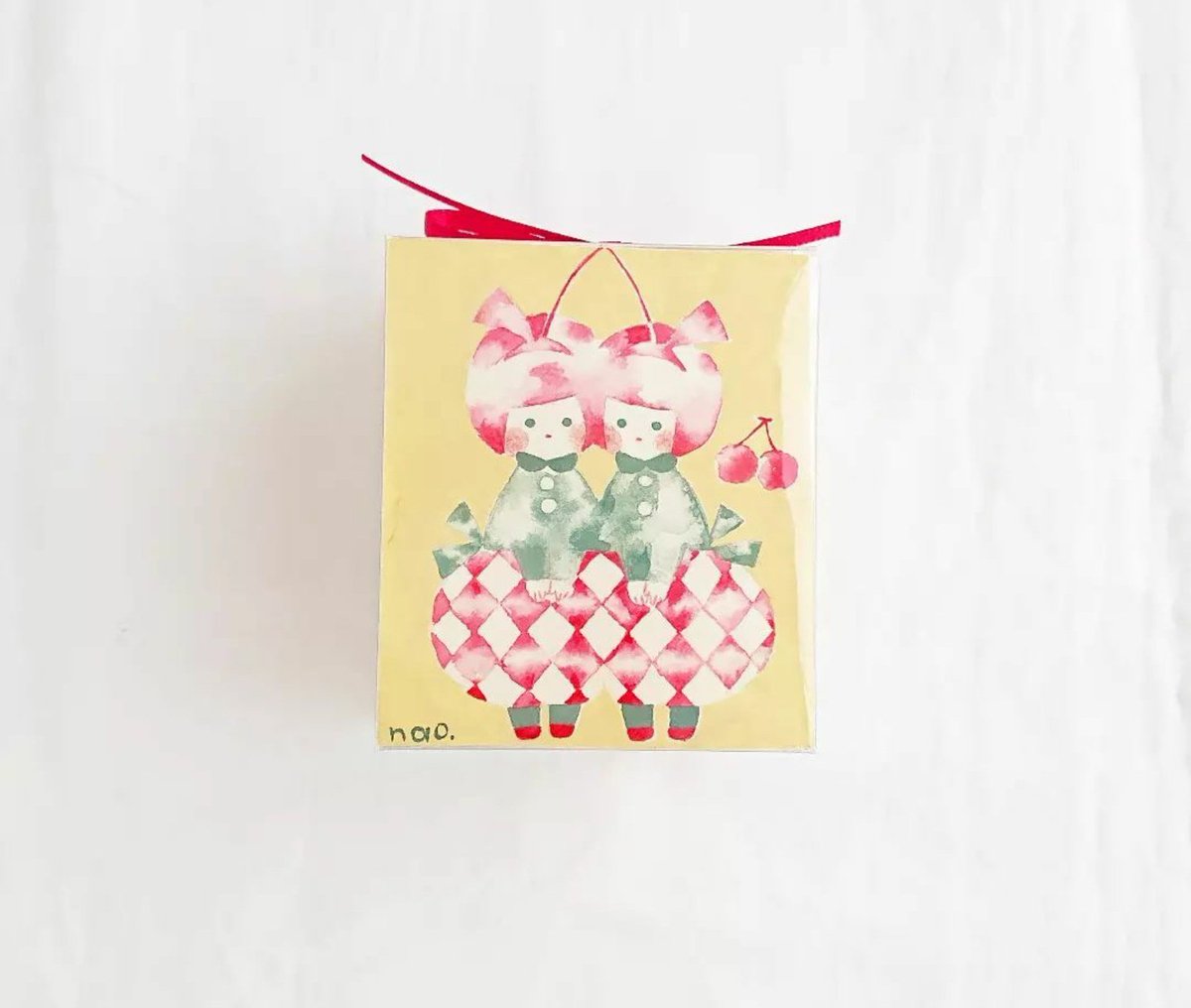 ◯セミオーダー◯ 「24日のサクランボ」 ご注文頂き制作しました。 手のひらサイズの小さな絵画です。 #イラスト #水彩 #原画