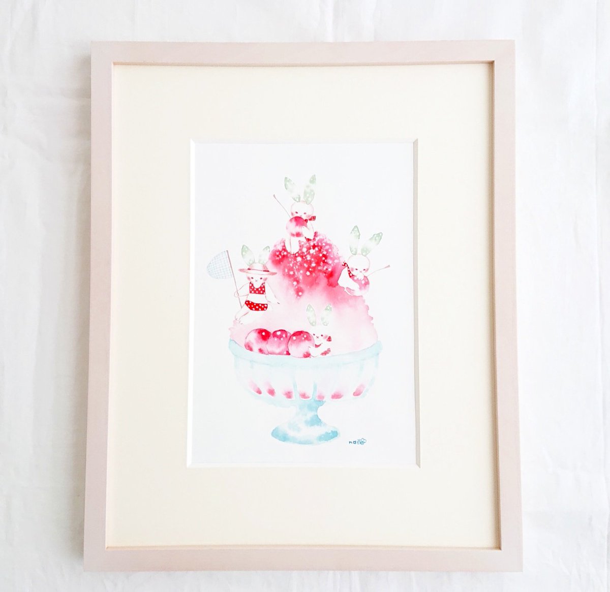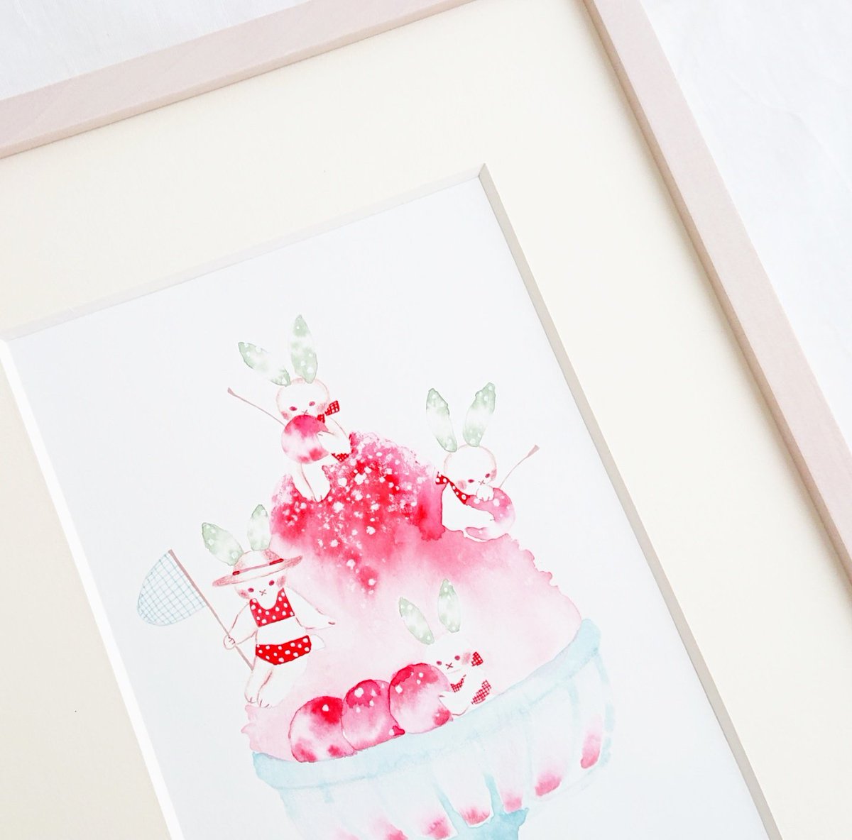 「雪うさぎの夏休み」 こちらの絵画、先月通販でご購入いただきました。 ありがとうございました✨ #水彩画 #水彩