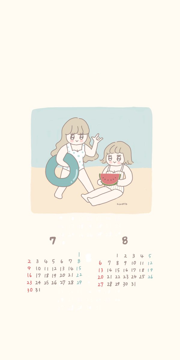 7月カレンダーどうぞー!今回は8月もいっしょにいさせて🤟🏻🍉