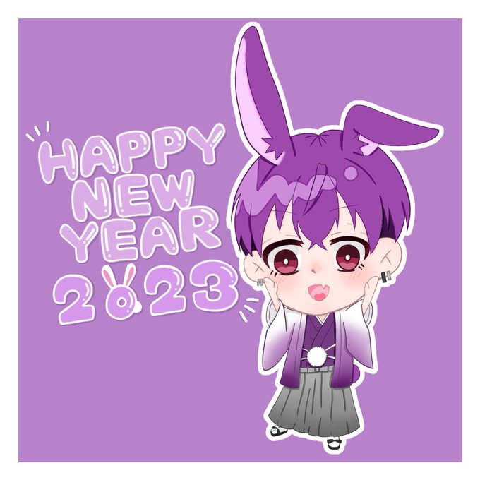 1 12 あけましておめでとうございます❕ 出遅れました🐰🍆 #茄子画 23/01/10 06:38