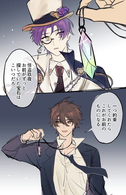 何かこう、名のある怪盗玖夜様が世界中回って色んな宝石を盗んではその後悪戯な形式で返すとで金持ち達を翻弄され続けてきたけど、本当はずっと探していたものは毎回彼を追いかけて捕まえようとした探偵エイトさんが持っているという...怪盗探偵パロの玖エイが見たいからのrkgk(説明が長い