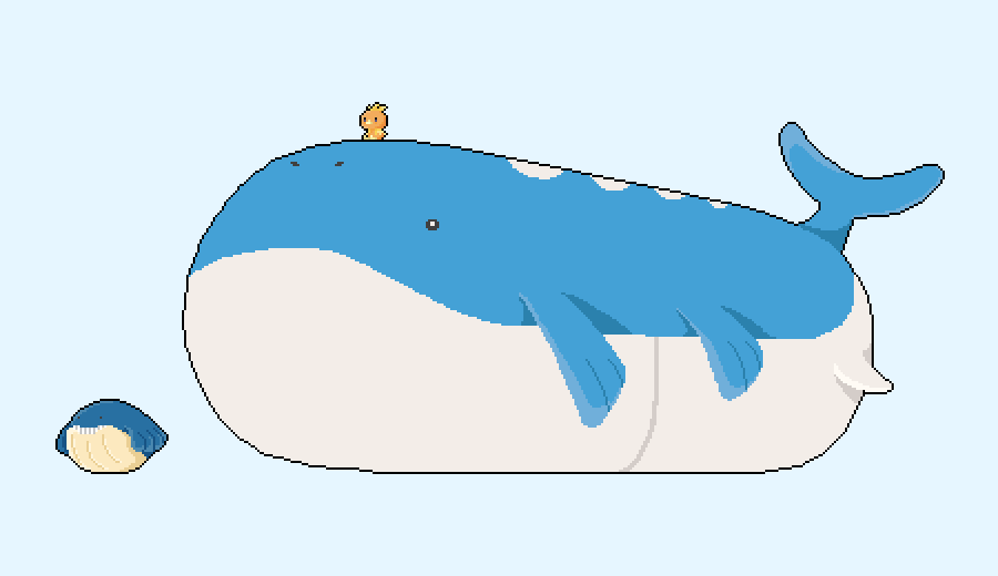 Waimer line, OH LAWD HE COMIN, torchic for scale lol (i actually halved wailord's size) #pixelart #ドット絵