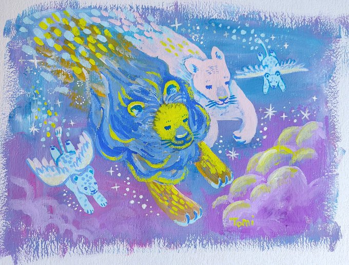 2 39 獅子座流星群みたいな感じかな☆ キラキラなライオン😊 久しぶりのガッシュの方で描きました。 #ライオン 22/08/10 08:13