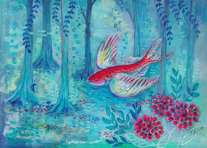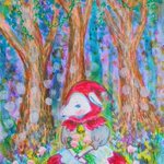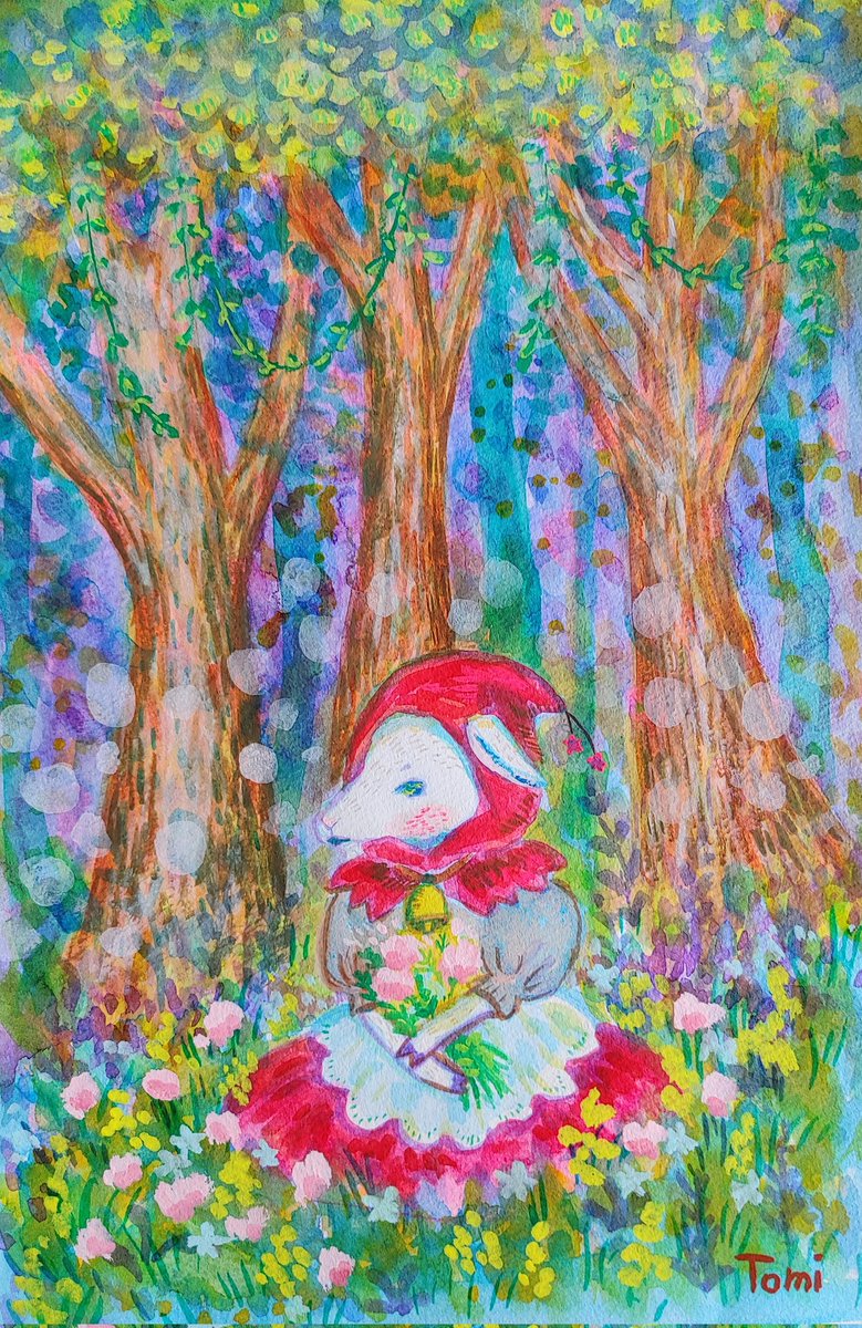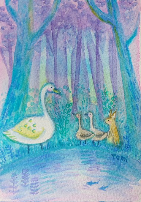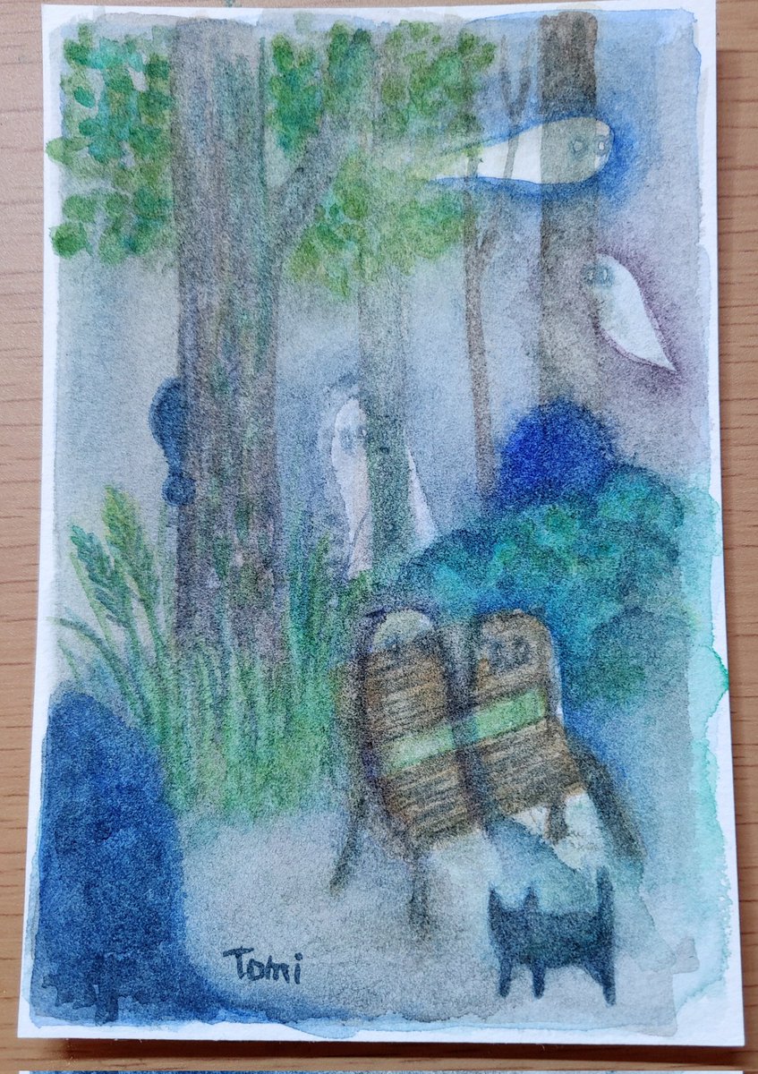 またまた森の絵。淡い色にしたかったので、水彩だけど白混ぜて描いてみました。 アッカ隊長を思い出す一枚です😊