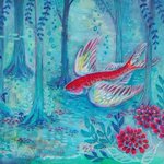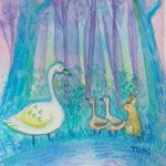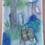 2 14 またまた森の絵。淡い色にしたかったので、水彩だけど白混ぜて描いてみました。 アッカ隊長を思い出す一枚です😊 22/11/29 13:40