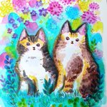 5 33 新しく仕入れた絵の具で早速描いてみました😊ネコちゃん 使いこなせてないのに絵の具増やしすぎかも(^^; #アクリル絵の具 22/08/26 16:25