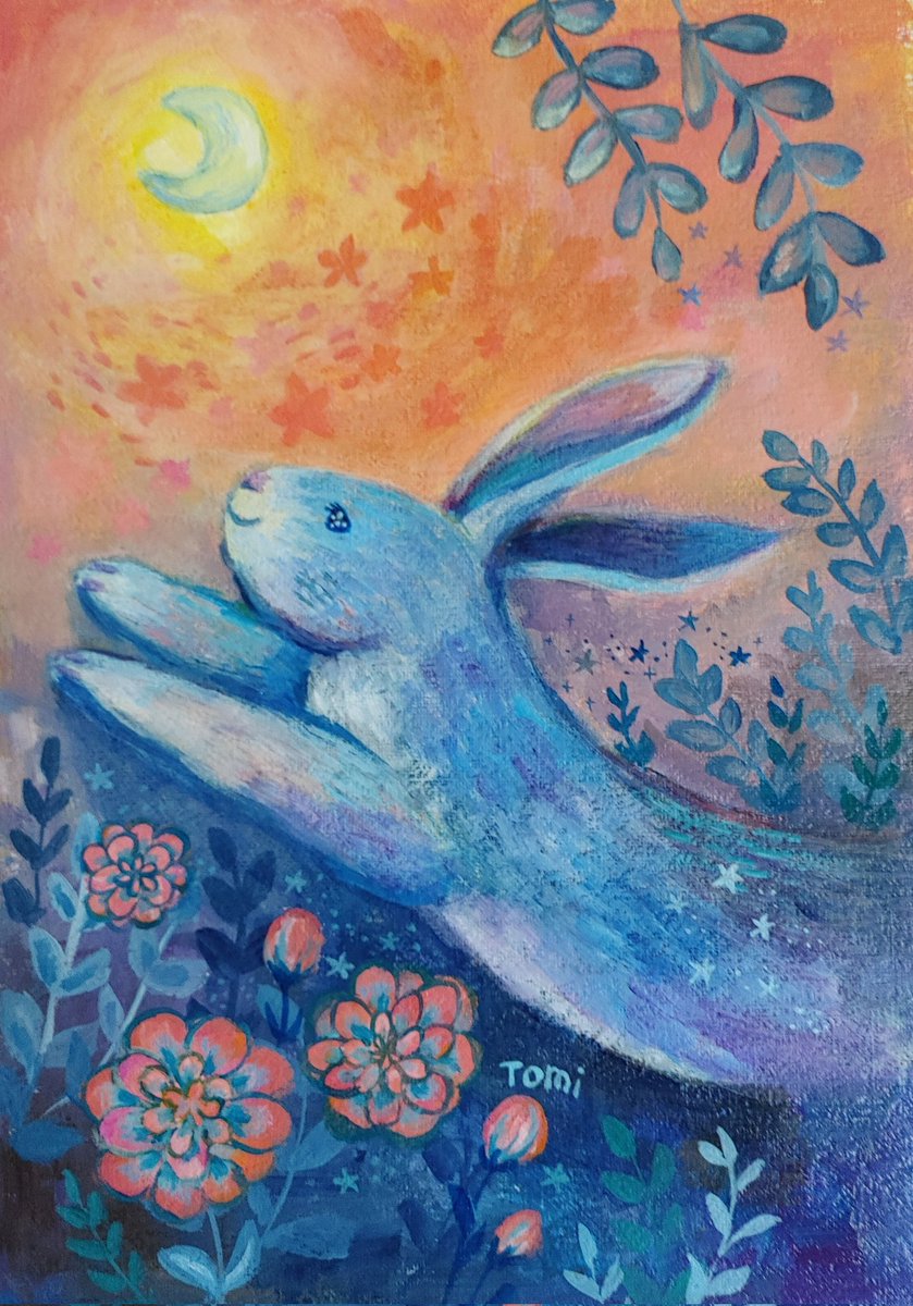 自分で飾る用に描いた絵😊 2023年のラッキーカラーを調べて。占い方によってバラバラだけど(^^;大体こんな色合いかなとイメージしました。 キレイに印刷出来そうだったらオマケポストカードにも使おうと思います。 #アクリル画