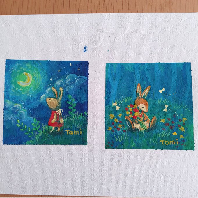 4 34 読書の秋😊キツネとアナグマ 小さな絵なので2枚くらい描いた方が絵の具が無駄にならなくて良いかも。 午前中天気が悪く部屋の中が薄暗かったので、刺繍はやめて絵を描きました。 #アクリルガッシュ 22/08/18 15:41