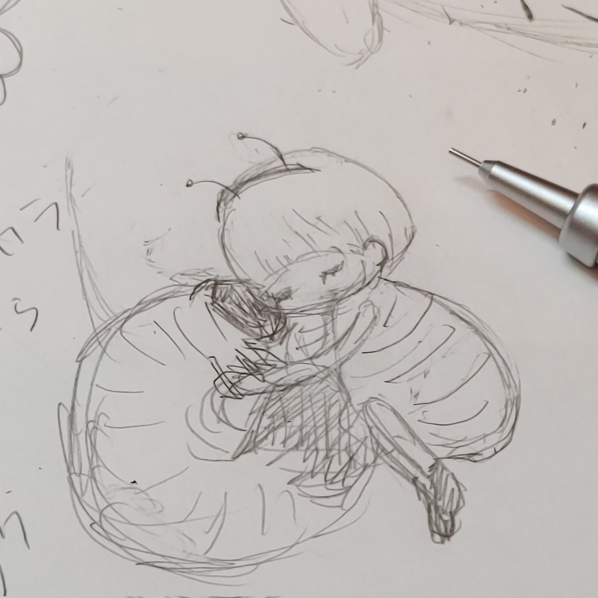 刺繍に疲れたので落書き 冬眠の虫子ちゃん