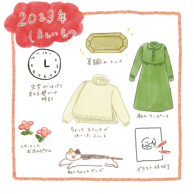 あけましたね。 やっと色々落ち着いて絵が描けるようになりました〜。 とりあえず手始めに欲しいものなど描いてみました。 今年も宜しくお願いします。 #HappyNewYear2023 #イラスト #イラスト好きな人と繋がりたい