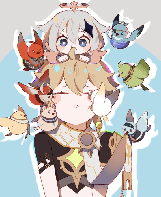 ヤマガラとパイモンに襲われる空ッッッ #原神