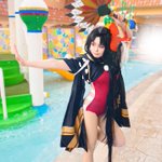 #Fate英霊を実際に着てみてわかったこと 牛若ー! 腰巻きより袖取られる方がツライ 右手側は防御力高いので安心 水着はめっちゃ布ある安心