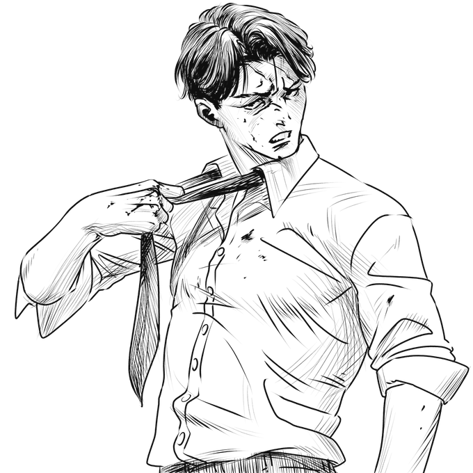 #創作男子版深夜の真剣お絵描き60分一本勝負 お題【ネクタイ】 【しかめっ面】 ご依頼入る前の朝1時間で描いちゃった😛一重はこういう表情が映えていいですね お題ありがとうございました🙇♀️