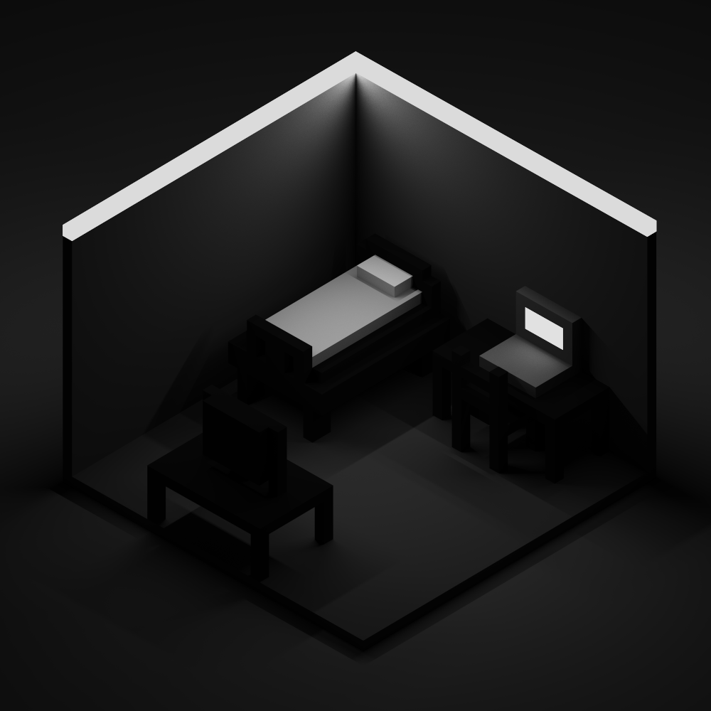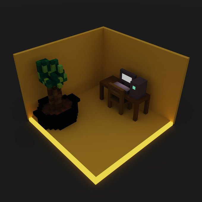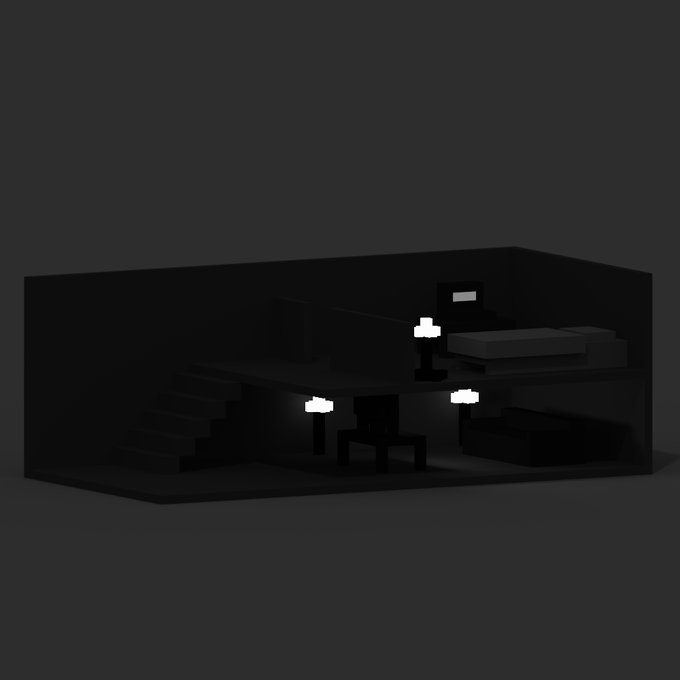 Decided to remake Minimal Office Space. Much prefer the b&w and light on top of the room. #voxel #voxelart #magicavoxel