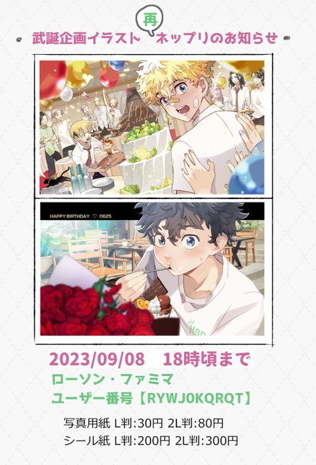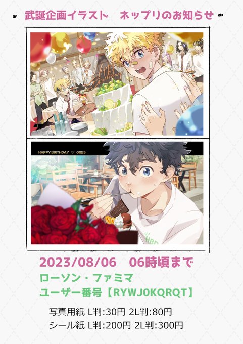以前登録した🎍誕企画のネップリですが、印刷し逃した方がいらっしゃるとのことで再登録しております! ご入用の方はどうぞ~! ユーザー番号は前と同じです☺️ twitter.com/naruko_toreve/…