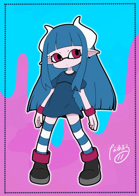 ツノちゃん(青)が スプラトゥーンメイクしてみた #お絵描き #イラスト #スプラトゥーン