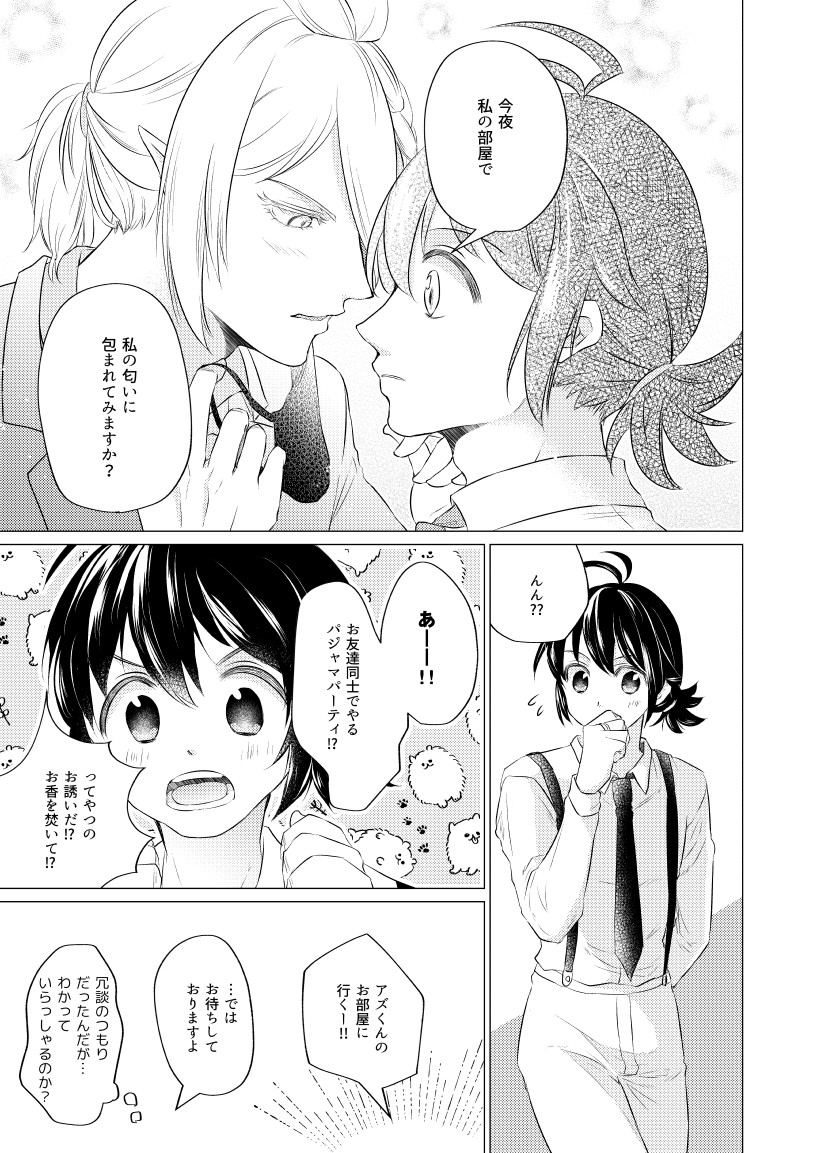88 1580 魔ふぃ、アズイル漫画7P(1/2) 捏造&WEB再録。続きはリプツリーにて。 23/07/25 15:11