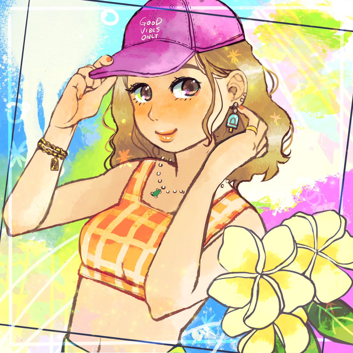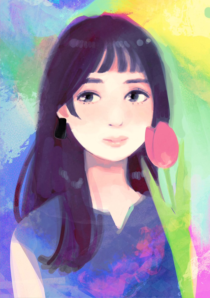 #絵描きさんと繫がりたい #絵柄が好きっていう人にフォローされたい #イラスト 色彩の中に生きる女の子を描いています。! すみません、さっきアップしたイラスト、間違えてスクショを混ぜちゃってたのであげなおしました!