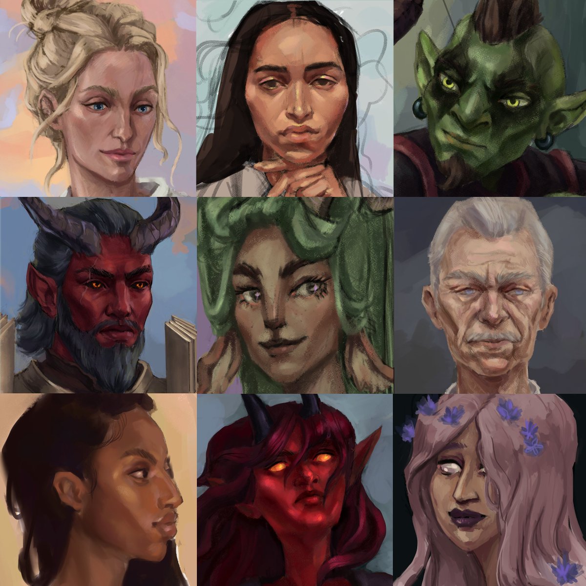 new commission of cool dnd party for lovely @apocallipses and her friends 🥰 #dndart #ArtistOnTwitter #DnDcharacter #fantasyart