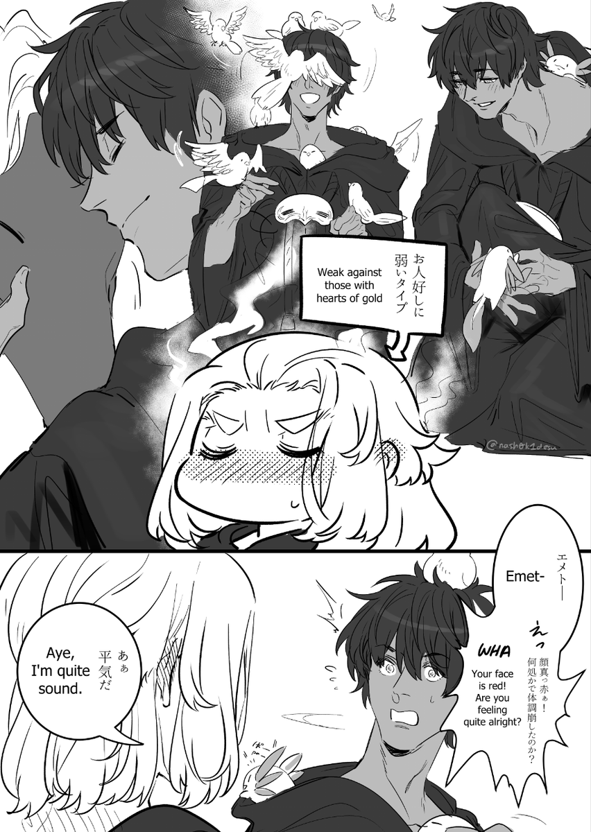 Black = YoshiP youtu.be/IqoV_EF8jAM?t=… I translated this clip way back (it's my channel) and I like how they executed the idea of how much a paradise with no fault the Unsundered World is. There's clearly many flaws (Panda etc) but all buried like this to continue the facade