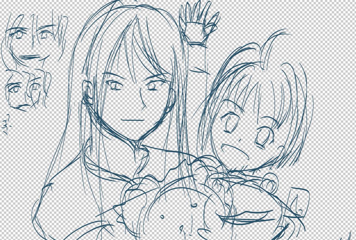 #このタグを見た人はラフ画とその完成絵を見せる 去年描いたやつがあった。ちなみに実際はもう少し手直しして一旦色置いて線画引いて塗って加工