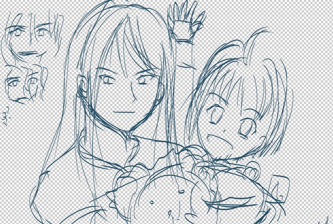 これしか残ってなかった、ウラモン先生関係だと #このタグを見た人はラフ画とその完成絵を見せる