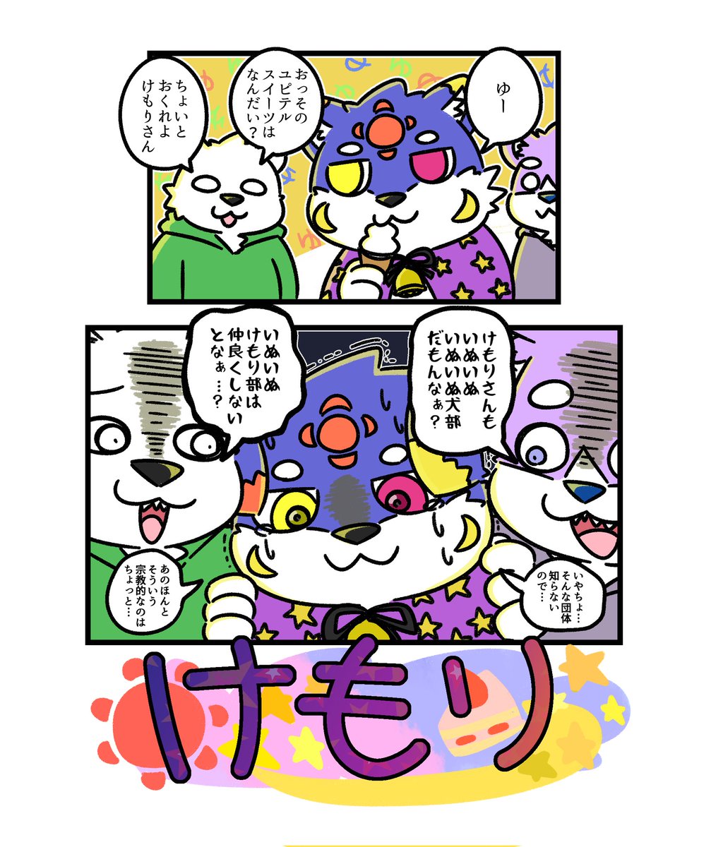 31 84 新刊②『喜々楽々』 どいつもこいつも(ろ)に続くちょっとした小話を本にしました 喜楽君がご飯を食べるだけです A5/12P(表紙込み)/全年齢対象 内容8Pとうすーい本ですがよかったら読んでみてください #けもケット13 23/04/25 21:31