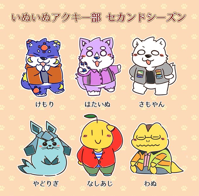 24 92 けもケット13にて「いぬいぬアクキー部セカンドシーズン」頒布予定です けもり、はたいぬ、さもやん、やどりぎ、なしあじ、わぬの全6種になります 大きさ約6cmです 狂気の身内グッズになりますが、もしよければどうぞ! 23/04/07 15:05