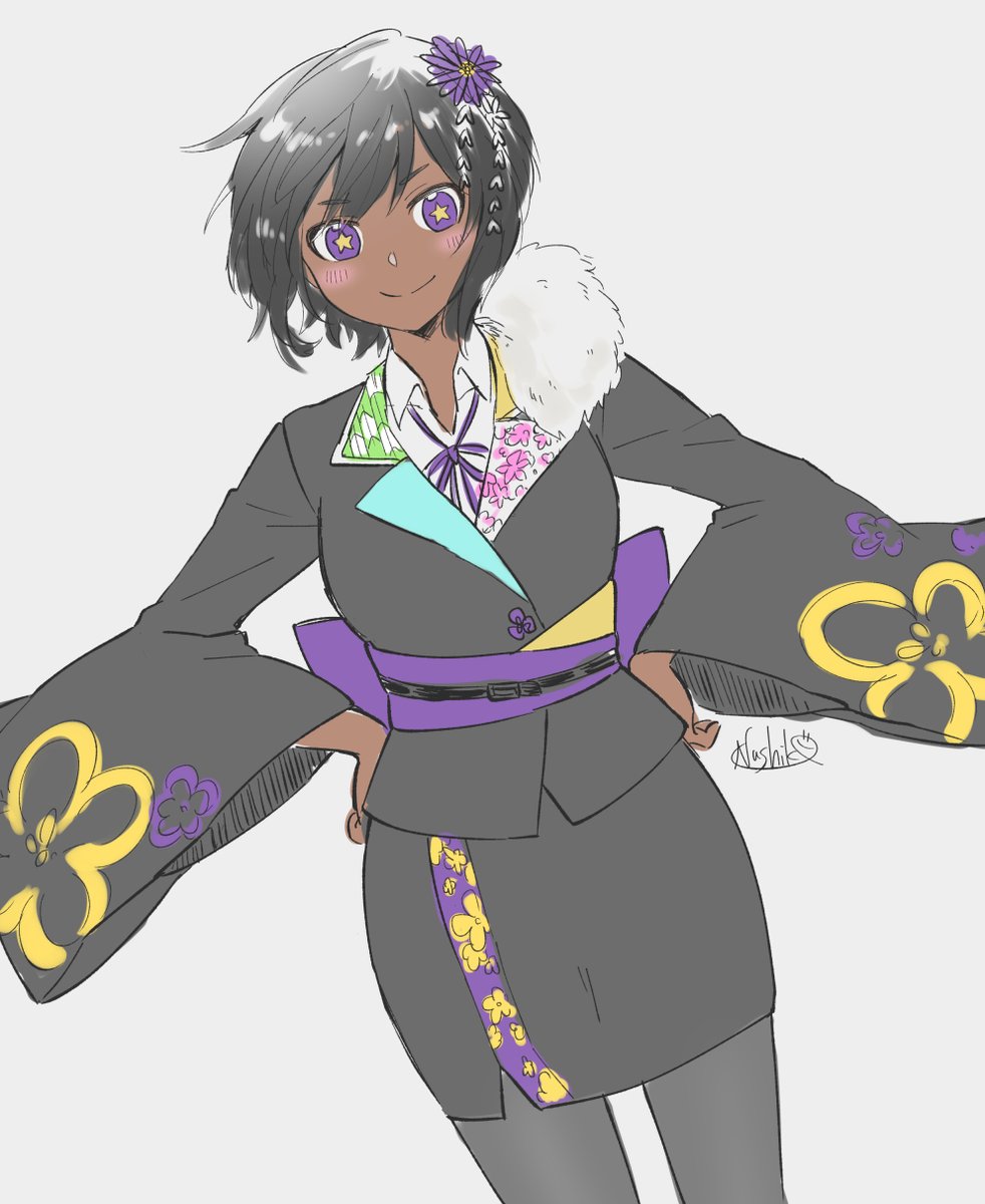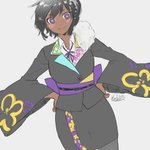 褐色黒髪振袖スーツ...???(らくがき)(後で消します)(お絵描き会参加したかった)