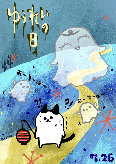 2 11 今日は幽霊の日ですってよ! #ゆうれいの日 #イラスト #オリジナルイラスト #猫イラスト #ねこ 22/07/26 18:15