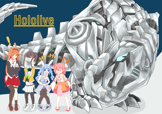 ギガノトテイム4人コラボ記念絵 ARK1番隊、2番隊、3番隊、大規模攻略作戦頑張! #ぺこみここ夏 #みかじ絵 #祭絵 #ぺこらーと #miko_Art |
