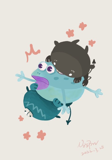 13 76 小搗蛋們!好喜歡無重力青蛙🤣 #リヴリー #リヴリーファンアート 22/03/28 21:05
