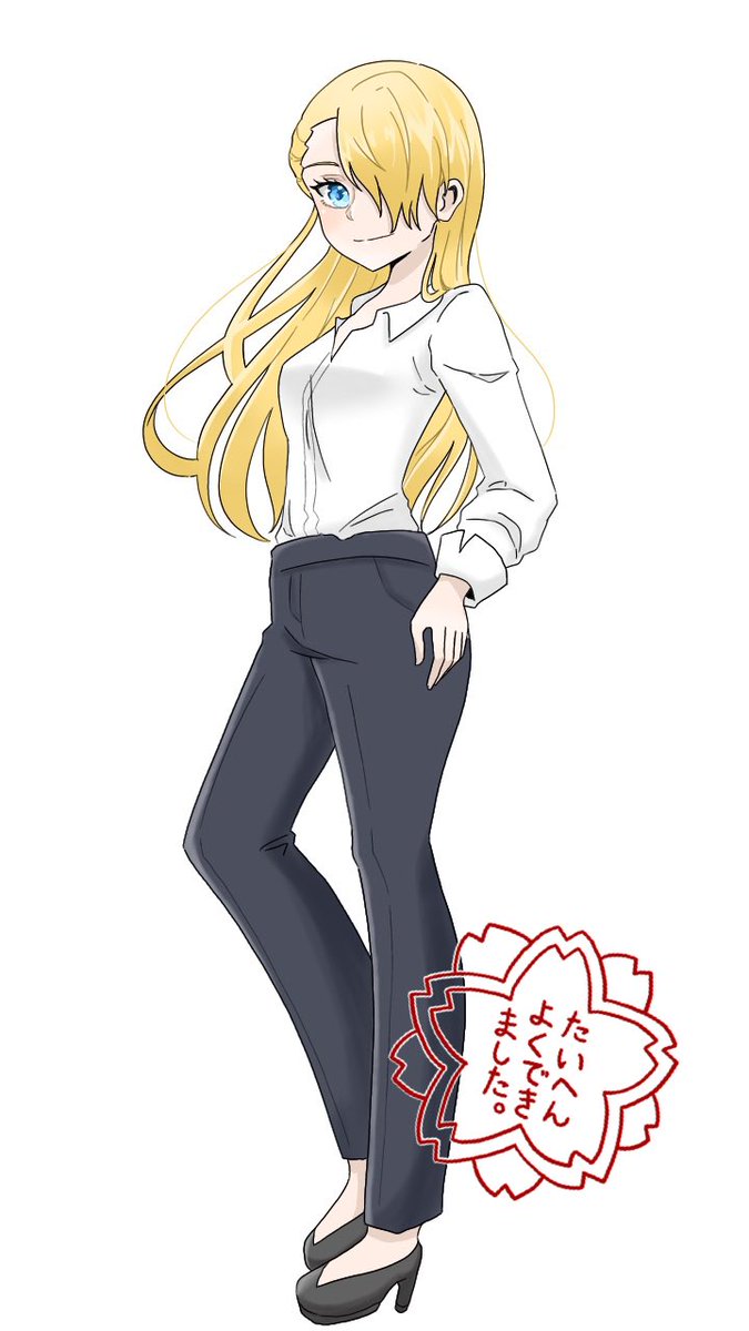 ココナラにて、女性の立ち絵を描かせて頂きました! 金髪の中性的な女性とのことで、かっこいい雰囲気に仕上がるようにしました、ありがとうございました! #ココナラ #有償依頼 #イラスト #立ち絵 #有償依頼受付中