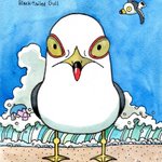 5 40 今日は一日中雨だったので鳥見には行けず。昨日海でいっぱい見たウミネコを描いてみた。 23/07/14 17:54