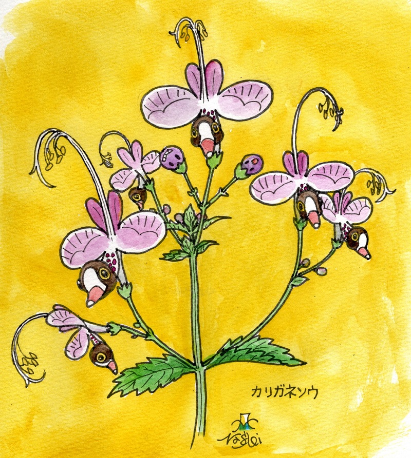 可愛い姿のカリガネソウを描いてみました。かなり無理があるなぁ。