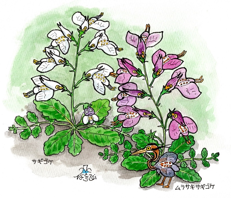 リクエストのあったサギゴケ(ムラサキサギゴケ)を描いてみたけど、花の蜜を吸ってるハチドリみたいになってしまった(^_^;)。