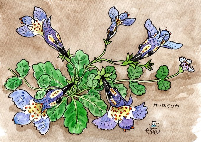 0 14 リクエストのあったサギゴケ(ムラサキサギゴケ)を描いてみたけど、花の蜜を吸ってるハチドリみたいになってしまった(^_^;)。 23/05/08 21:40