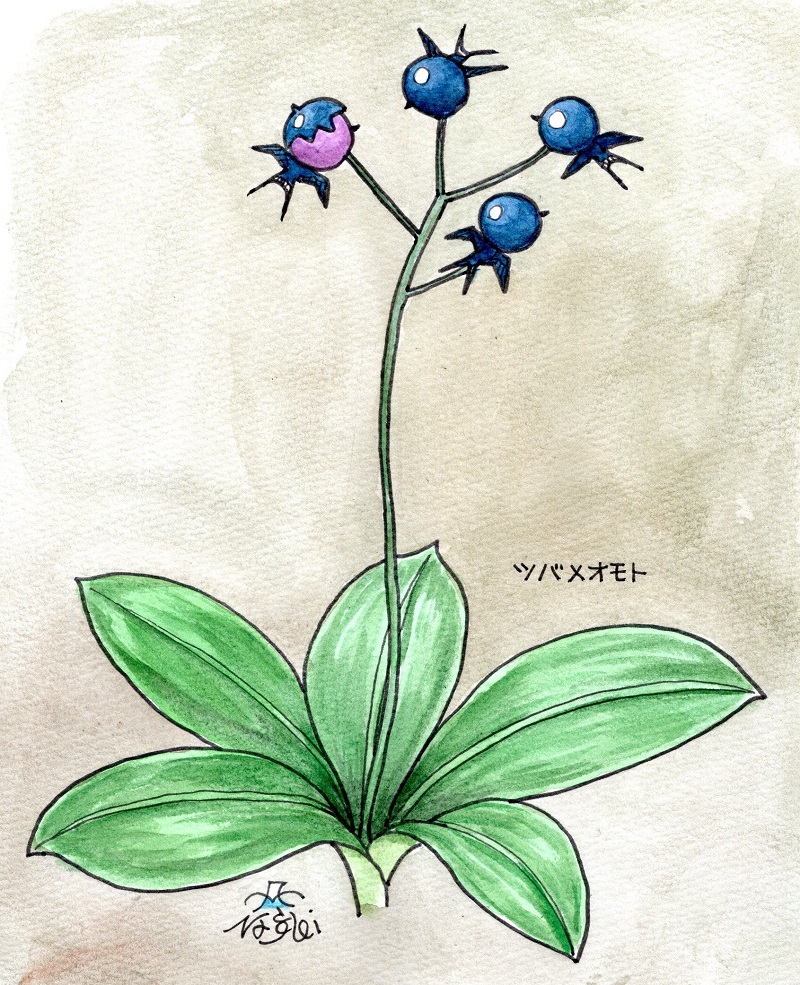 熟した果実がツバメの頭の色に似てるとか。ツバメオモトを描いてみました。