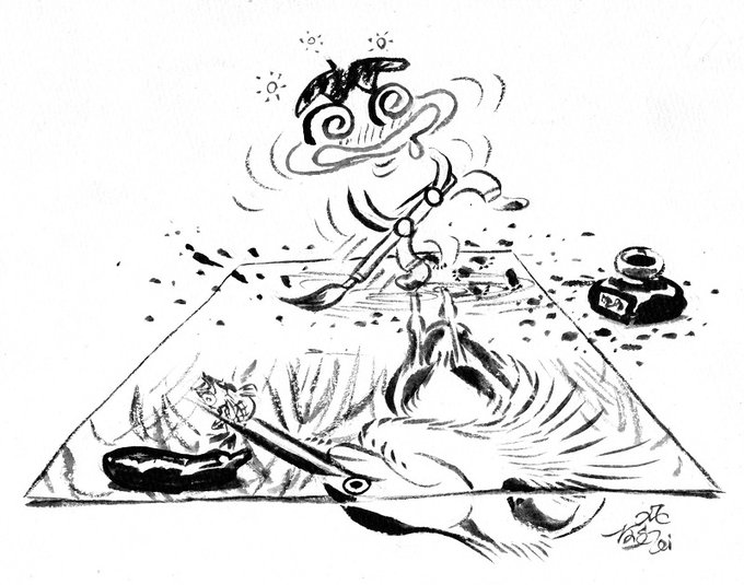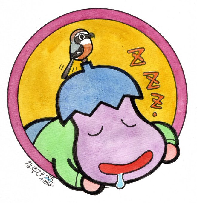 1 18 先月描いた居眠りするなすびを缶バッジにしてほしいとのリクエストがありましたので、改めて缶バッジ用に描いてみました。 23/05/19 18:04