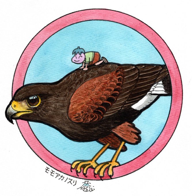5 55 「缶バッジの鳥たち」、リクエストのあったモモアカノスリ(日本の鳥ではありませんが)を描いてみました。 23/05/26 18:50