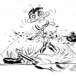 酔っ払いの落書き。昼間からビール飲んだ勢いで描いてしまいました。ゴメンなさい。(謝るくらいなら載せるなってか・・・)