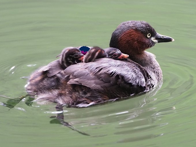 31 257 一番可愛い時のカイツブリのヒナ。5羽いたヒナの中に1羽だけとても小さいのが・・・無事に育ってほしい。 23/06/23 21:52