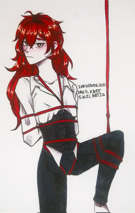 Опоздала по причине не рассчитала что настолько увлекусь Day 4. Knot. Раньше я бы нарисовала петлю А теперь шибари #inktober2021 #GenshinImpact #Diluc #art