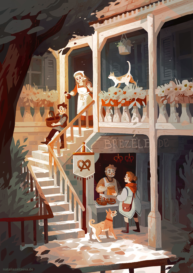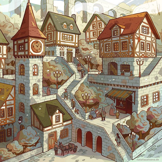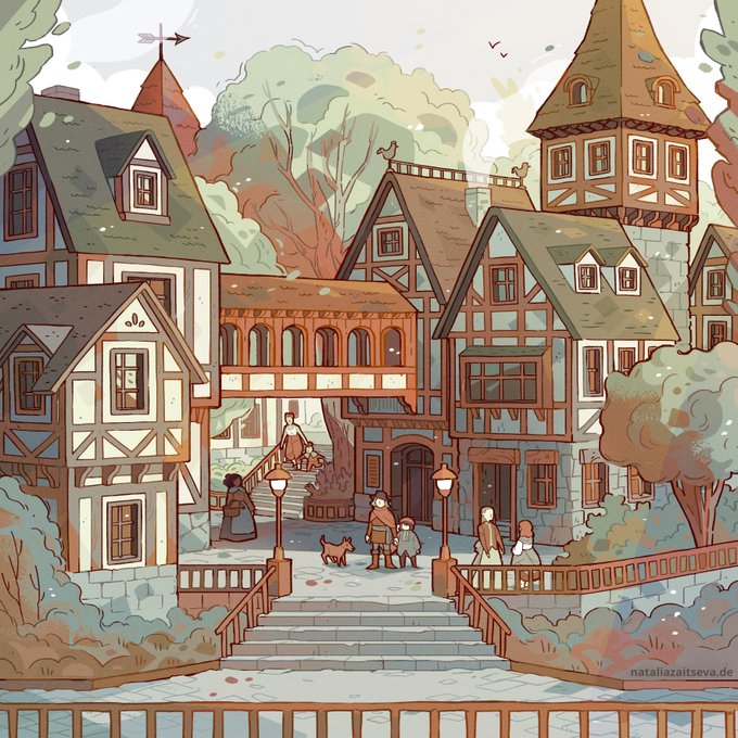 Hi, I’m Natalia, a freelance illustrator from Germany. I like history and fantasy and I enjoy drawing wholesome scenes, cute characters and old architecture 😊#PortfolioDay
