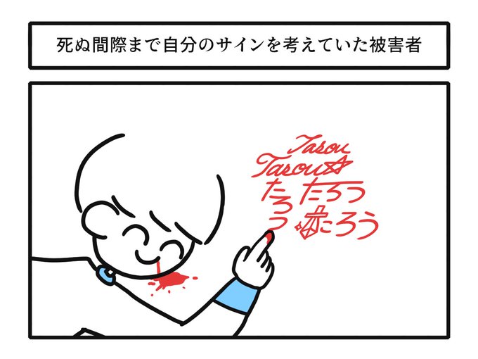 死ぬ間際まで自分のサインを考えていた被害者 #漫画 #1コマ #漫画が読めるハッシュタグ