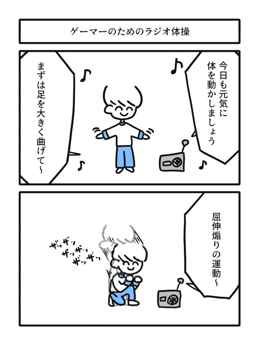 ゲーマーのためのラジオ体操 #漫画 #2コマ #漫画が読めるハッシュタグ