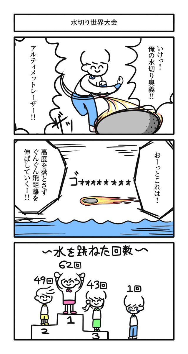 16 146 水切り世界大会 #漫画 #3コマ #漫画が読めるハッシュタグ 22/07/20 18:00