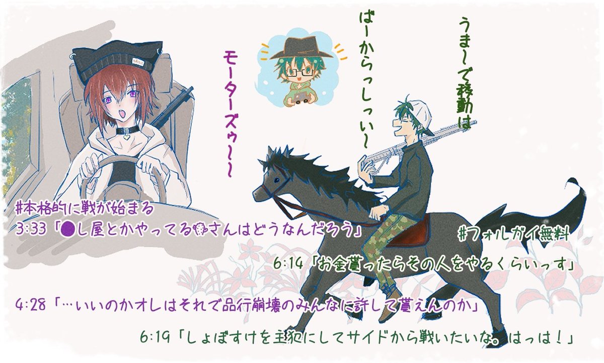 3 46 CMソングを車で練習する🪣と馬に乗ると歌い出す🌵 1期の身内にあまあま戦闘民族とヘイト体幹ばつぐん狂人の電話もしもしとその後すきでした #バケゆか絵 #ぐちつぼを許さない 22/07/12 21:39