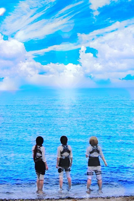 Cosplay 【進撃の巨人】 ″ ほら…… 言っただろうエレン 商人が一生かけても取り尽くせない程の巨大な塩の湖があるって…… 僕が言った事 間違ってなかっただろ″ ⚔️🗝ルーちゃん@90A_bIo ⚔️🧣モーリーちゃん@molly10_08 #ラコロール #ラコロール洲本撮影会