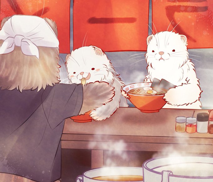 18 119 へい、ラーメンおまちどう #フェレット #イラスト 22/10/16 18:34